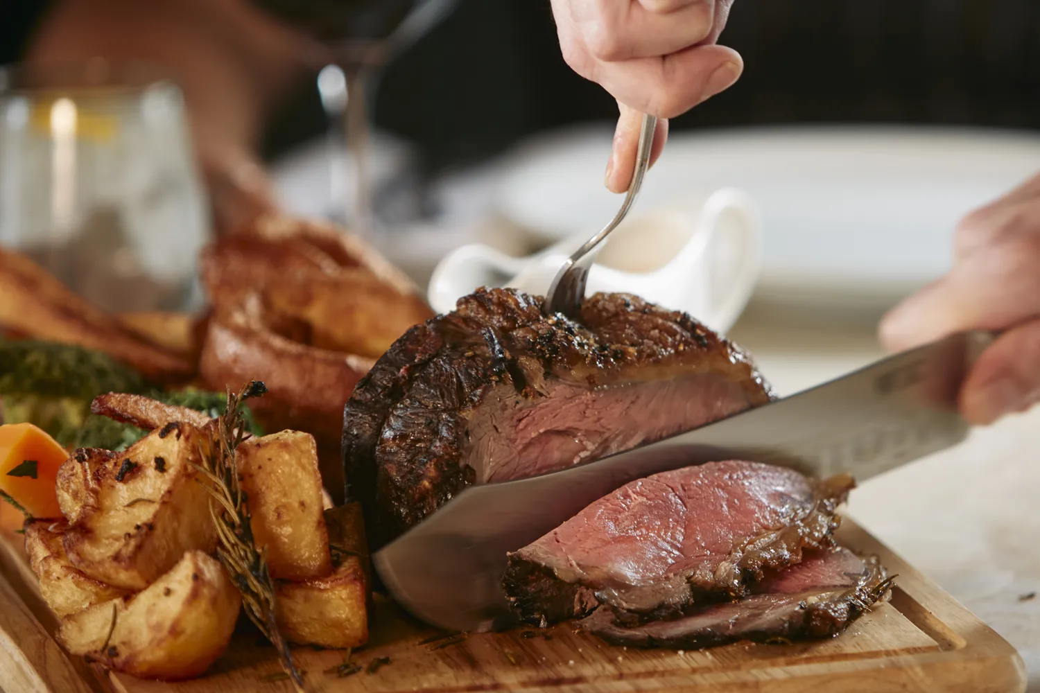 And new for Autumn 2025 is our Sharing Roast dinner. Enjoy a generous beef sirloin or whole roast chicken with all the trimmings for you to carve and share with friends and family at the table. Simply pre-order before 2.30 pm the Thursday before your lunch and we take care of the rest. It's great value too!